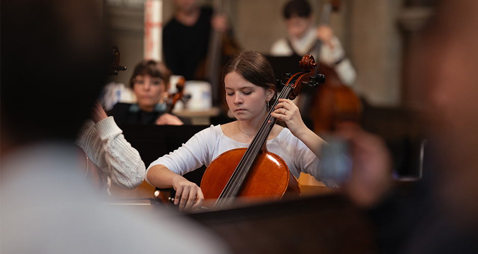 Hier spielst du nicht alleine, sondern im Team. Wir proben nachmittags mehrstimmige Stücke, die mal schwungvoll, mal gefühlvoll und immer abwechslungsreich sind. Das macht nicht nur Spaß, sondern verbessert auch deine Fertigkeiten auf dem Instrument – alles, was du in der Streicherklasse gelernt hast, kannst du hier einsetzen und weiterentwickeln. Unterstützt wirst du dabei von professionellen Instrumentalpädagoginnen und -pädagogen, die dich anleiten und fördern.